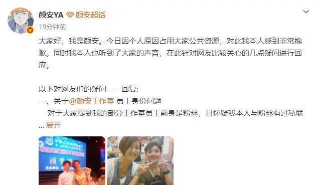 针对最受关注的“粉丝入工作室”质疑,颜安澄清争议员工杜女士实为表姐,2025年7月入职后负责工作细节与生活照料,不参与内容创作,入职源于亲情感恩而非私联。他同时严正否认私联粉丝,强调团队无粉丝成员,用亲属身份打破“粉圈化”猜想,还附上照片佐证亲属关系,回应得直白又扎实。